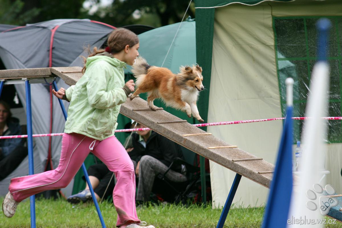 Postupně jsme se rozběhali a běháme tak jak běháme :).Když jsem si Goldii pořizovala měla jsem v plánu i výstavy,ale Goldie má ke standartní šeltičce hodně daleko,takže se účastníme jen voříškiád ;).